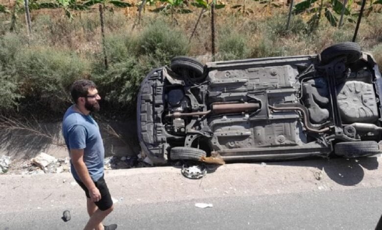 إنقلبت سيارة عند مفرق مغدوشة اليوم الإثنين، تقودها سيدة ومعها عائلتها، بعدما تفاجأت بالحواجز التحذيرية التي وضعت لقطع الطريق بسبب الاشتباكات الحاصلة في مخيم عين الحلوة.