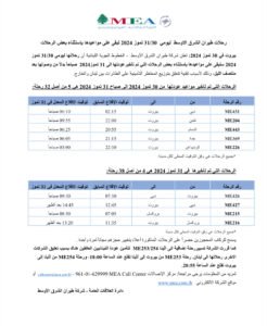 إليكم جدول رحلات الـ MEA ليومي 30 و31 تمّوز
