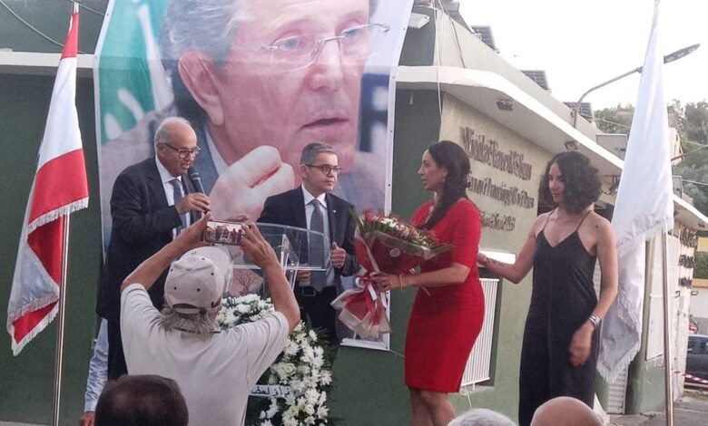 بعدها، تمت إزاحة الستارة عن اللوحة التذكارية من قبل ممثل الرئيس سليمان ورئيس البلدية وعائلة العميد الراحل.