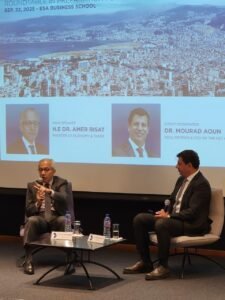 بيروت، 23 أيلول 2025: نظّم تجمّع رجال وسيدات الأعمال اللبنانيين (RDCL) مساء الإثنين 22 أيلول 2025 طاولة مستديرة في حرم المعهد العالي للأعمال في بيروت (ESA Business School) بعنوان: “بناء المستقبل، اليوم!”. شارك في اللقاء معالي وزير الاقتصاد والتجارة د. عامر البساط كمتحدّث رئيسي، وأدار الحوار د. مراد عون، عضو التجمّع، بحضور مدير عام المعهد العالي للأعمال السيّد ماكسنس دويو وعدد كبير من أعضاء التجمّع.