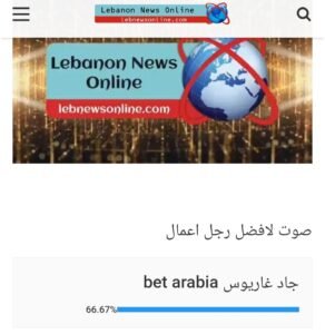 في استطلاع أجرته شركة *Lebanon News Online*، تصدّر رجل الأعمال *جاد غاريوس*، مؤسس شركة *Bet Arabia*، المرتبة الأولى كأفضل رجل أعمال، محققًا أعلى نسبة أصوات بين المتنافسين.