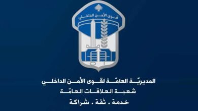صدر عن المديريّة العامّة لقوى الأمن الدّاخلي ـ شعبة العلاقات العامّة البلاغ الآتي: في إطار المتابعة المستمرة التي…