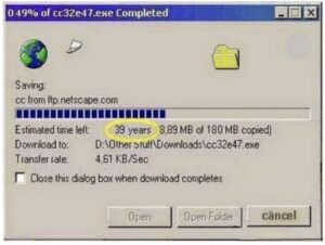 أما إن حاولت تحميل فيلم بحجم 700 ميغابايت فكان الأمر سيستغرق منك حوالي 28 ساعة كأقصى سرعة، أما إن كانت سرعة الإنترنت منخفضة فقد يستغرق الأمر من 3 إلى 5 أيام، أي أن الوقت المقدر للتنزيل لم يكن ثابتاً.
