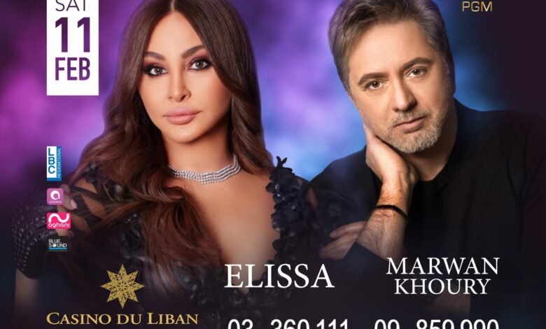 لمناسبة عيد الحب، تلتقي ملكة الإحساس إليسا والفنان الشامل مروان خوري في حفل غنائي عنوانه الرومانسية والإحساس، في “صالة السفراء” في “كازينو لبنان”، وذلك من تنظيم شركة “P.G.M Group Production” لصاحبها المنتج بسكال مغامس، حيث سيقدمان باقة مميزة من أشهر أغانيهما التي يتفاعل معها جمهورهما في ليلة استثنائية.
