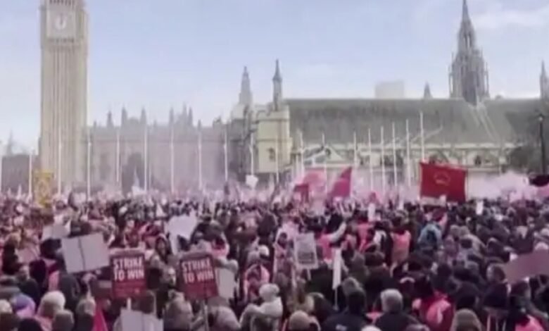 يشارك ما يصل إلى نصف مليون بريطاني من المعلّمين وموظفي القطاع العام وسائقي القطارات والمحاضرين الجامعيين في إضراب يعد أكبر عمل منسّق لعقود، وتقول الحكومة إنه سيتسبّب في تعطيل الأعمال على نطاق واسع النطاق.