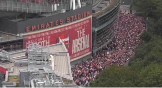 وكان من المقرر انطلاق المباراة في الساعة 11:30 بتوقيت غرينيتش، ولكن تم تأجيلها بسبب مشكلة واضحة في نظام التذاكر الرقمية الجديد لنادي أرسنال.