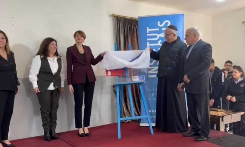 – أُقيم في مدرسة مار مارون – بيت الدّين – إحتفالاً رسميًّا حضره رئيس أساقفة صيدا للموارنة المطران مارون العمّار، وقائمقام الشّوف مارلين قهوجي، ومديرة المركز الثّقافيّ الفرنسيّ في لبنان سابين سيورتينو معَ فريقٍ من المركز وألفريد منصور ممثّلاً رئيس بلديّة بيت الدّين.