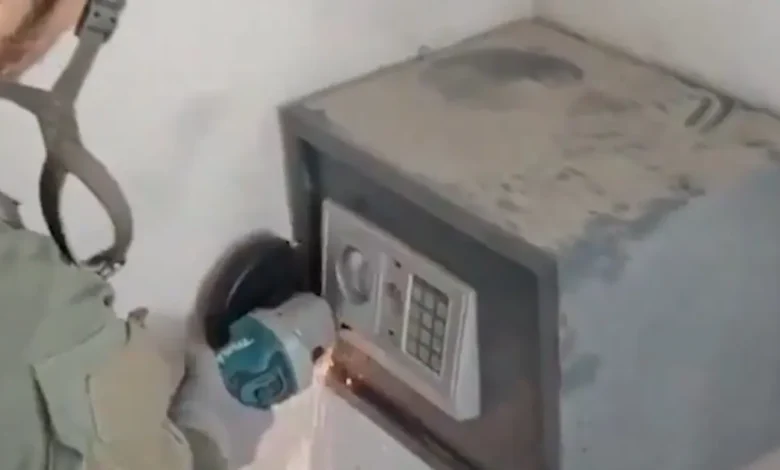 أظهر مقطع فيديو متداول جنوداً إسرائيليين قيل إنهم يحاولون فتح خزنة فولاذية بمنزل استولوا عليه بغزة، مستعملين أداة تستخدم في التلحيم.