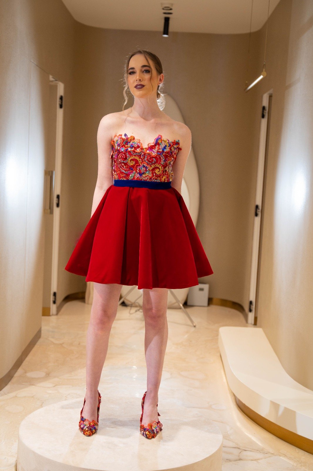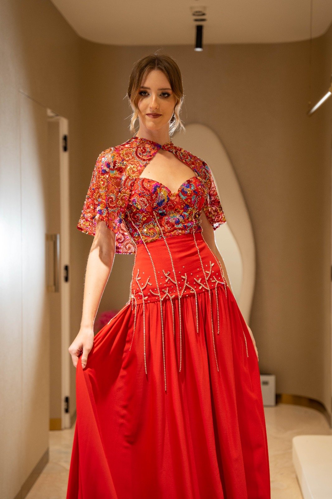 وتألفت المجموعة المميزة من 15 فستاناً مصمماً بعناية فائقة حيث تزينت كل قطعة بتطريز يدوي يبرز جوهر المرأة العربية، وتدرجت ألوان التصاميم من الظلال الجريئة من الأحمر إلى درجات البنفسجي والأخضر الساحرة.
