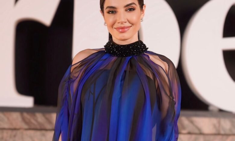 وبهذه المناسبة، اختارت ليال زيًا مميزًا عبارة عن فستان مموج باللونين الأزرق والأسود يشبه في شكله العباءة التقليدية.