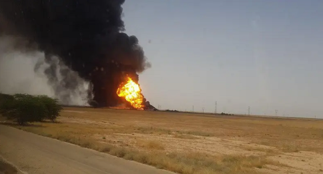 اندلع اليوم الأحد حريق في خط أنابيب لنقل النفط الخام شرق الفرقلس في حمص بسوريا.
