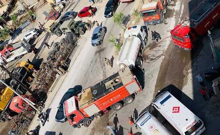 هذا وتعمل فرق من جهاز الطوارئ والاغاثة على اسعاف عدد من الاصابات التي تعرضت للاختناق بسبب الدخان الكثيف، وسط انتشار لوحدات الجيش في المكان لمنع المواطنين من الاقتراب.