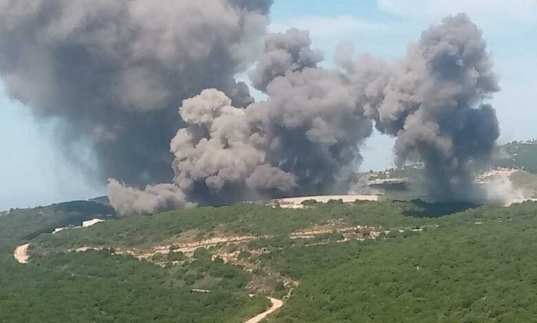 وادت الغارات الى اشتعال النار في الاحراج المتاخمة للخط الازرق قرب بلدتي رامية وعيتا الشعب.
