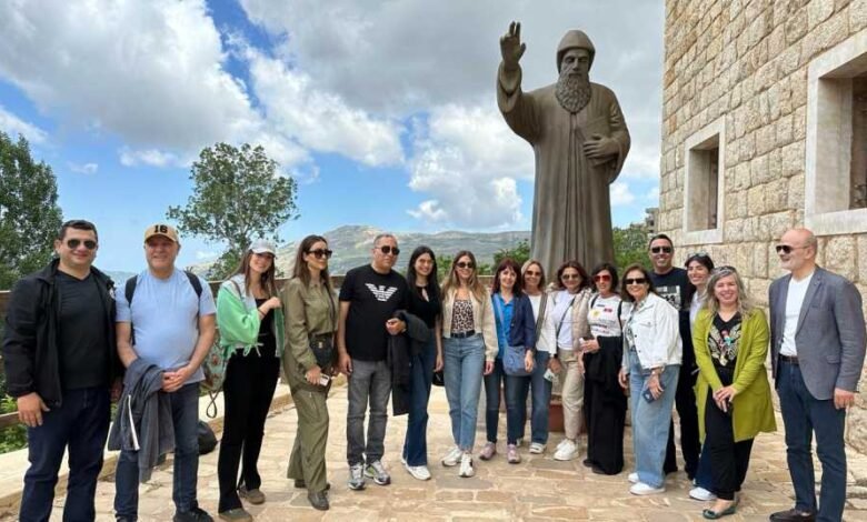 لينتقل بعدها الاعلاميون الى الكنيسة الأثرية حيث جرن عماد القديس شربل، ومنها إلى بيت القديس الوالدي والصلاة على نية خلاص لبنان، ثم زيارة المغارة التي تنبع منها المياه العجائبية.