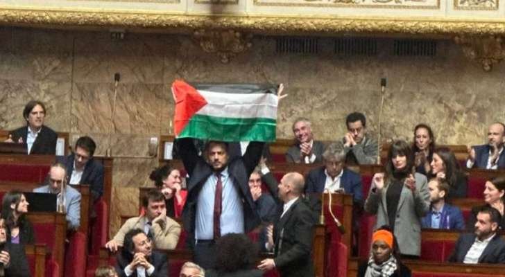 قررت الجمعية الوطنية الفرنسية اليوم تعليق عضوية نائب من اليسار المتطرف لمدة 15 يوما لتلويحه بعلم فلسطيني في مقر الجمعية، ما تسبب في تعليق إجراءات الجلسة لنحو ساعة.