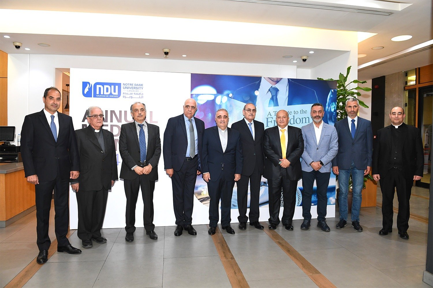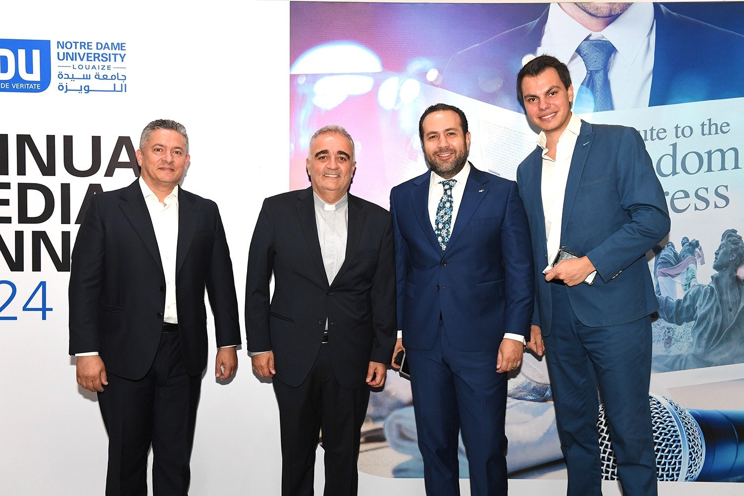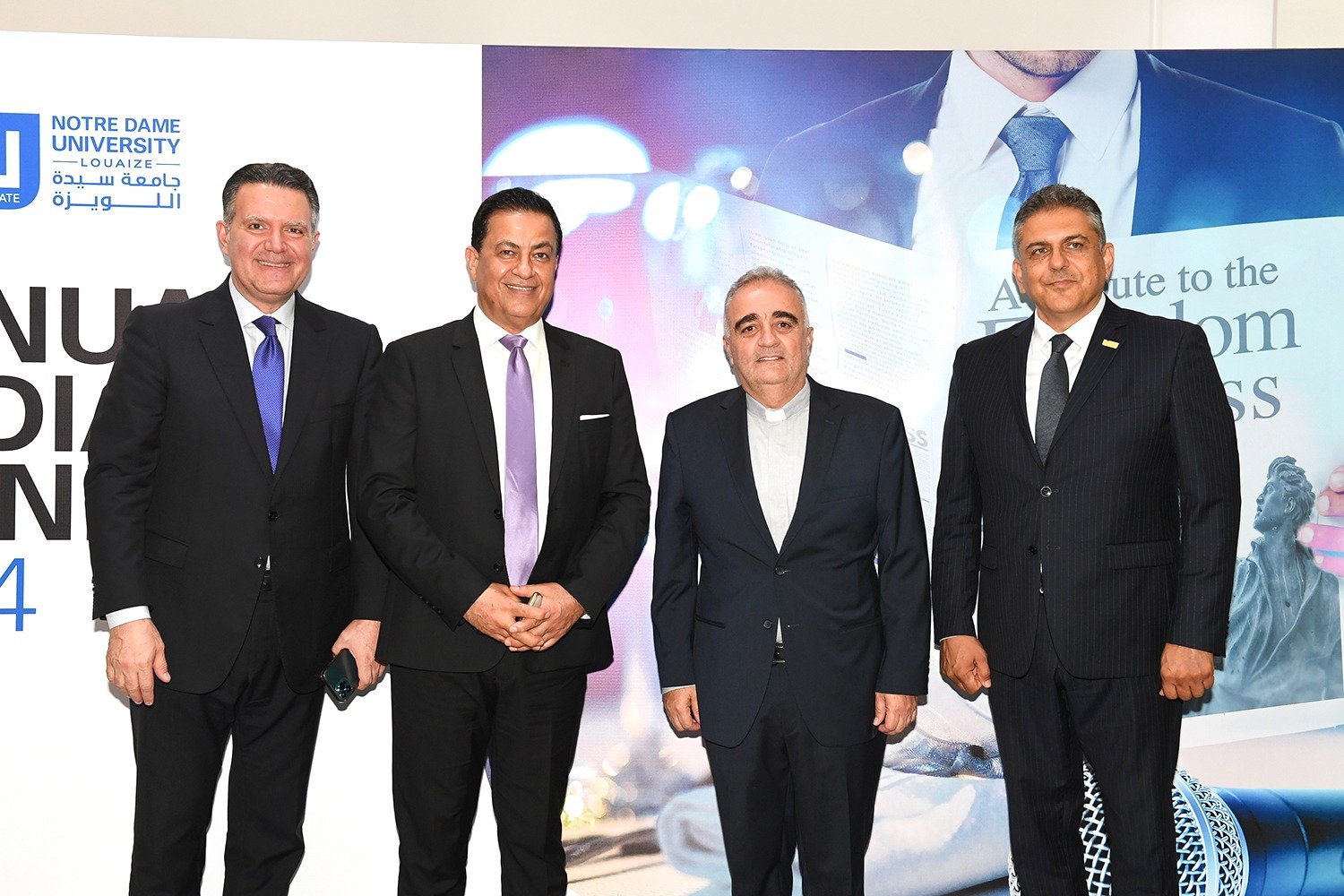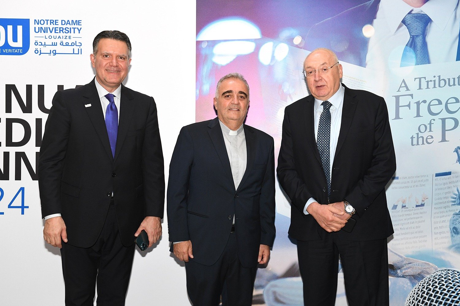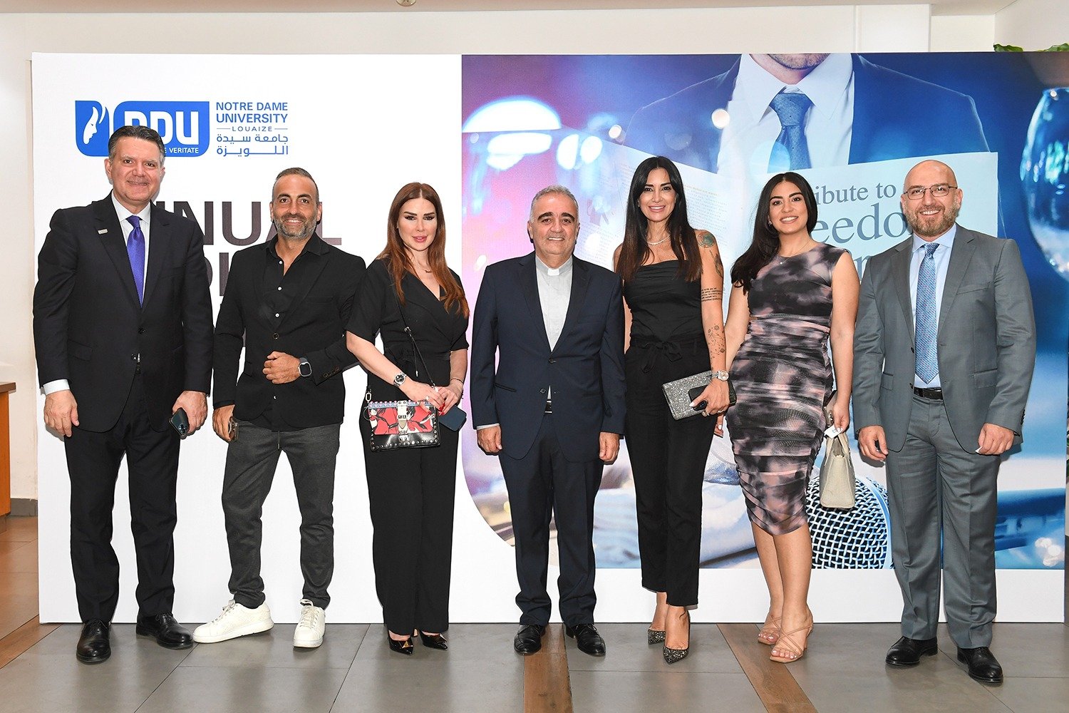 سيادة المطران أنطوان نبيل العنداري رئيس اللجنة الأسقفية لوسائل الإعلام، الأستاذ ألبير شمعون ممثلاً معالي وزير التربية والتعليم العالي القاضي عباس الحلبي، الأستاذ جوزف القصيفي نقيب المحرّرين، الأستاذ رفيق شلالا مدير مكتب الإعلام في القصر الجمهوري، المونسنيور عبدو أبوكسم مدير المركز الكاثوليكي للإعلام، الأستاذ جاك كلاسي مدير عام تيلي لوميار ورئيس مجلس إدارة نورسات، العميد حسين غدّار مدير التوجيه في الجيش اللبناني، المقدّم شادي عون ممثلاً العميد إيلي الديك مدير شعبة الإعلام في المديرية العامة للأمن العام، الدكتور جورج حرب المستشار الإعلامي في المديرية العامة لأمن الدولة. رئيس جامعة سيّدة اللويزة الأب بشارة الخوري، بالإضافة إلى وجوه إعلامية وصحافية، شخصيات روحيّة وعسكرية، أكاديمية واجتماعية، إلى جانب أسرة الجامعة.