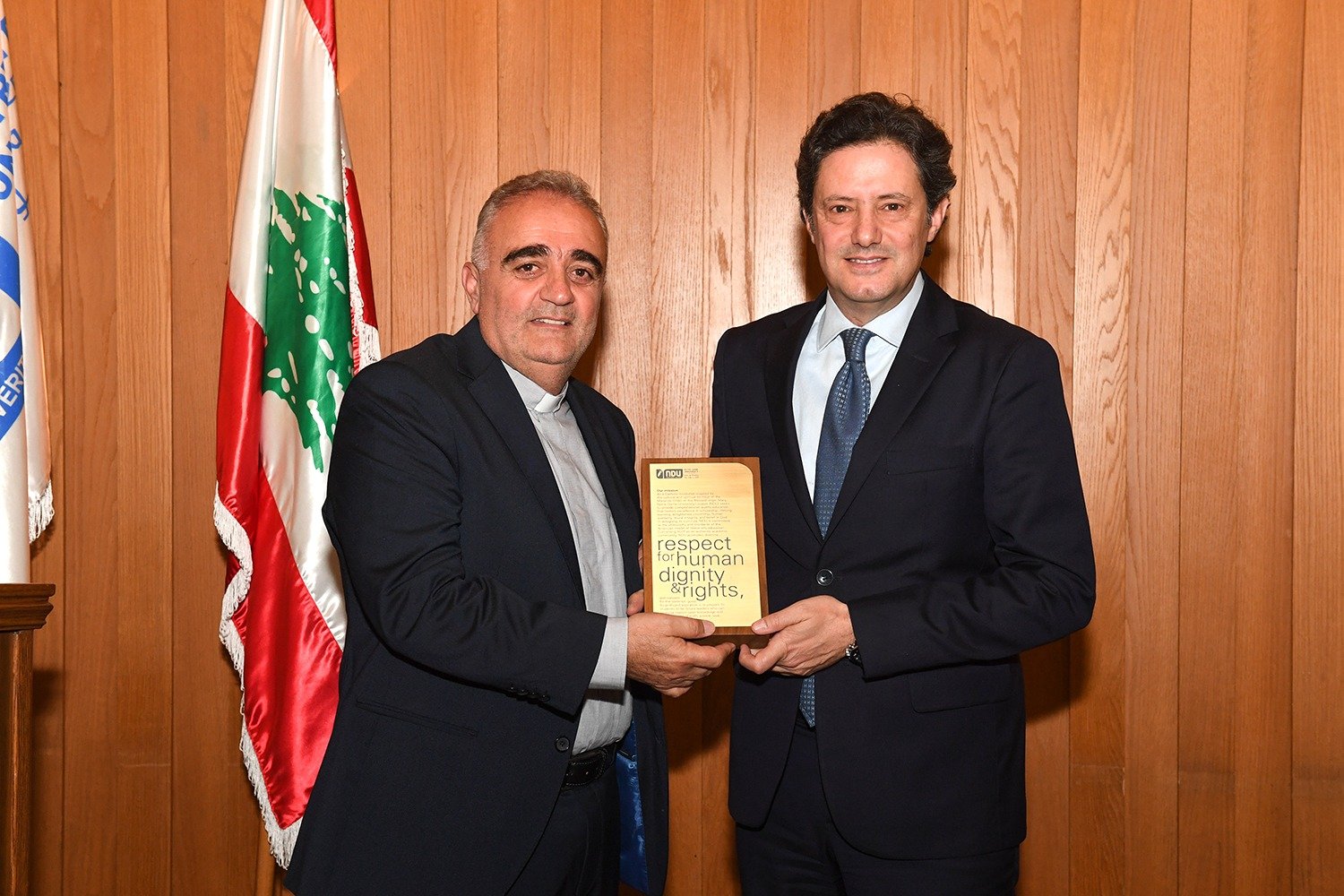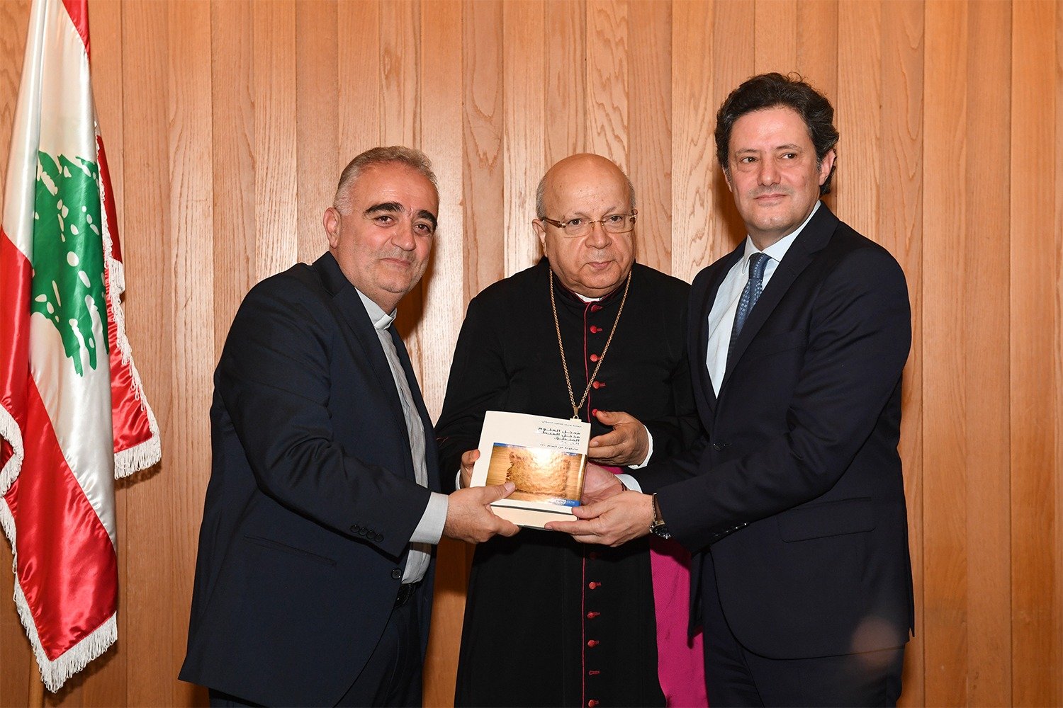 ثم قدّم الأب الرئيس، هدية تذكاريَّة لسيادة المطران العنداري ولمعالي الوزير مكاري.