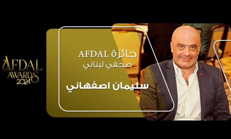 نظرا لجهوده الكبيرة والممتدة لسنوات طويلة في الإعلام اللبناني قامت إدارة مهرجان الأفضل برئاسة الاستاذ مازن النوري بتكريم الإعلامي اللبناني سليمان اصفهاني من خلال منحه جائزة Afdal صحفي لبناني لعام ٢٠٢٤ وذلك في حفل ضخم اقيم في منتجع كامبنسكي بحضور عدد كبير من الشخصيات البارزة في لبنان والعالم العربي .قدّم الحفل باحترافية عالية الاعلامي رجا ناصر الدين والممثلة غنوة محمود حيث كرّمت ادارة الحفل عدد