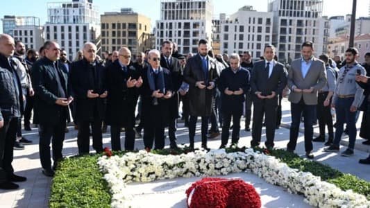 وقرأ جنبلاط والوفد الفاتحة ووضعوا الزهور على أضرحة الشهيد الحريري ورفاقه