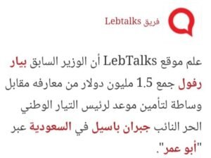 كتب الإعلامي خليل مرداس : سيناريو غير موفق نشرته الزميلة العزيزة كريستيان الجميل عبر موقعها، مفاده أن الوزير جبران باسيل، وبمساعدة الوزير السابق بيار رفول، جمع تبرعات بقيمة مليون ونصف دولار دُفعت للمدعو “أبو عمر” مقابل ترتيب لقاء لباسيل في المملكة العربية السعودية.