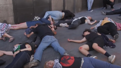 نشطاء إسبان يحاكون مجازر الاحتلال في غزة بفعالية وسط مدريد (شاهد)